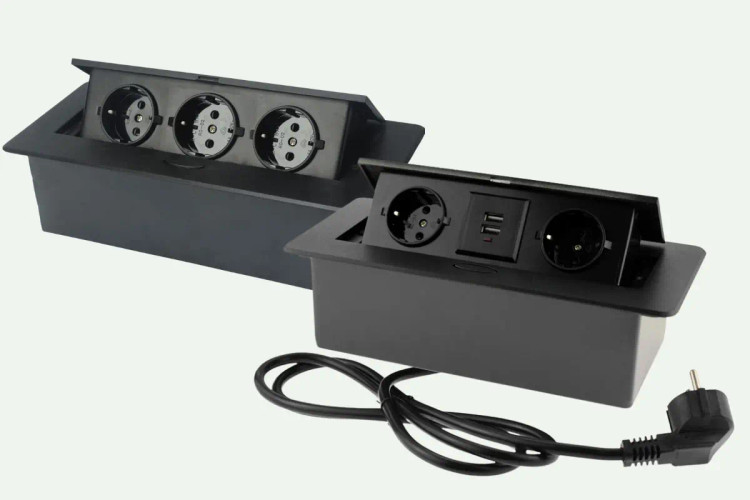 - پریز توکار کابینتی میز: این مدل برای نصب روی میزها طراحی شدهاند، دسترسی آسان به پریز برق را فراهم میکنند و در عین حال سطح میز را از سیم و دو شاخه تمیز میکند.
